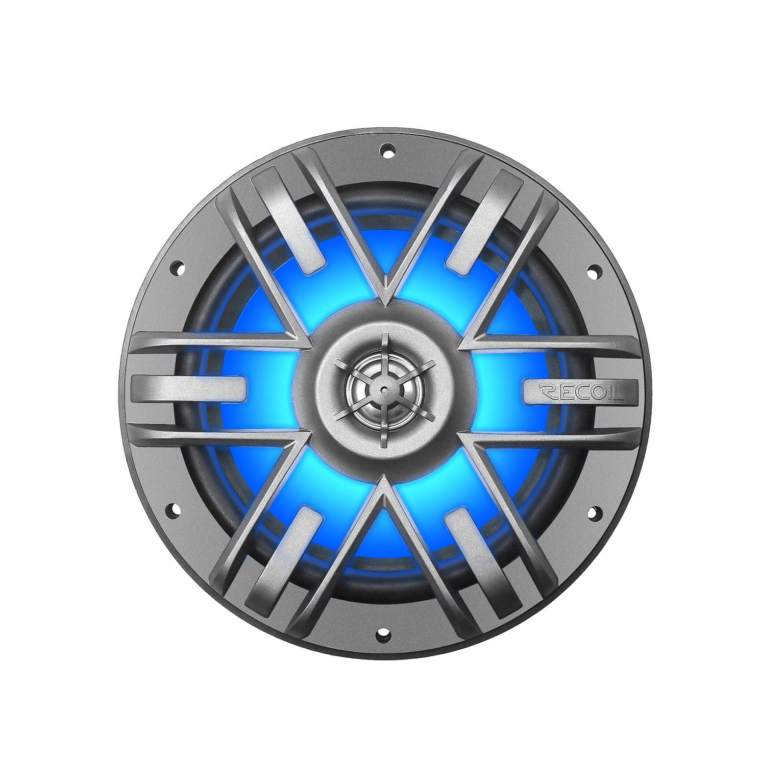 M1-65K M1 Series 6.5 Inch 2-Way Marine Boat & UTV/ATV Coaxial Speakers with Built-in RGB LED Lighting, Include RGB LED Speaker Rings and Controller, One Pair of Each Dark Silver and White Grilles, 4Ohm, MAX 240W Pair